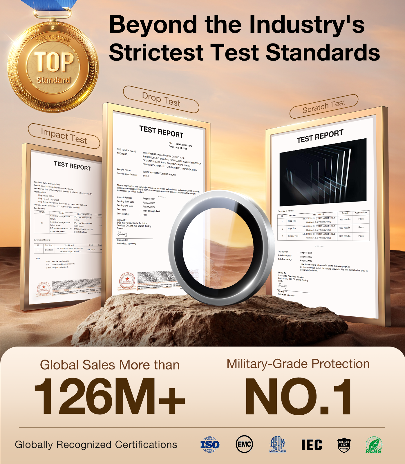 UltraGlass UNBREAK TOP 9H Glass for iPhone 17 Pro/Pro Max Camera Lens Protector, White Titanium